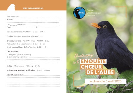 Le Groupe Ornithologique Normand vous invite à participer à son enquête régionale "Le Chœur de l'Aube" ! Un moment privilégié pour savourer mais aussi identifier les chants des oiseaux, seul ou à plusieurs.