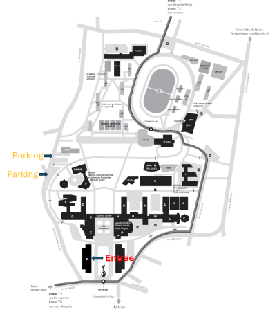 L’entrée se fera par l’entrée principale du Bâtiment B, la grande porte qui ouvre sur l’esplanade du Phénix. L'amphithéâtre Jean Vial se situe au rez-de-jardin du bâtiment B (plans d’accès ci-dessous).